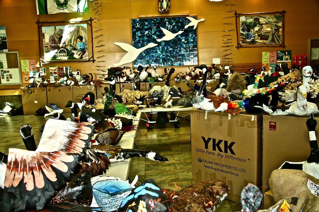 La Grande Migration est une oeuvre collective, interdisciplinaire, contemporaine, poétique, socioécologique, engagée, de par sa nature sensible, critique, évolutive, métaphorique, réflexive. Elle vise d’une part à réaliser un recueil de textes et d’autre part à réaliser une oeuvre d’art migrante. Les deux volets de l’oeuvre se nourrissent un l’autre dans un processus de création concomitant. Un nombre significatif de bernaches ont pris part à un parcours migratoire prédéterminé à partir des écoles qui ont décidé de participer pour se rendre jusqu’à une école isolée de la Côte Nord. Elles ont porté les marques culturelles et identitaires de leurs créateurs, élaborées à partir de l’étude et de la compréhension d’une problématique tripartite : questions environnementale, migratoire, identitaire et culturelle.